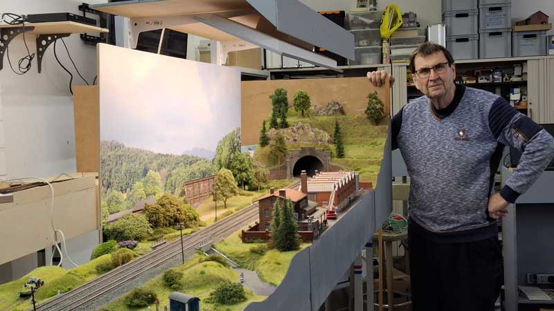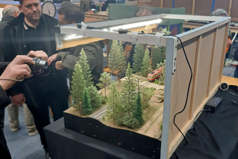 MotivationAlternative ModulpräsentationCoronawinter 2020/2021In diesen düsteren Wintertagen war viel Zeit zum Nachdenken. Dabei haben sich zwei Mitglieder, die öfters überörtliche Messen und Modellbahnausstellungen besuchen daran erinnert, dass viele Schauanlagen aller Spurweiten eingehaust, das heißt nur nach vorne offen eingefasst sind. Dazu noch mit einer Beleuchtung von oben und mit einem Hintergrund versehen, dieser oft fotorealistisch. Dadurch wird das Ganze insbesondere zur Freude von Besuchern, die gerne schöne Anlagenfotos machen.