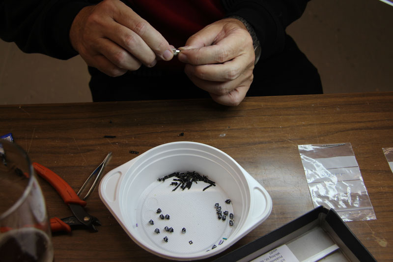 Stand am 30.09.2015: Die Arbeit für den "der Vater und Mutter erschlagen hat": Stundenlanges Zusammenfummeln der Weichenlaternen von Weinert.