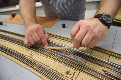 Stand am 27.01.2016: Die Montage der Elektrik geht in die Endphase. Letzte Arbeiten am 4ten Viertel des Bahnhofs.