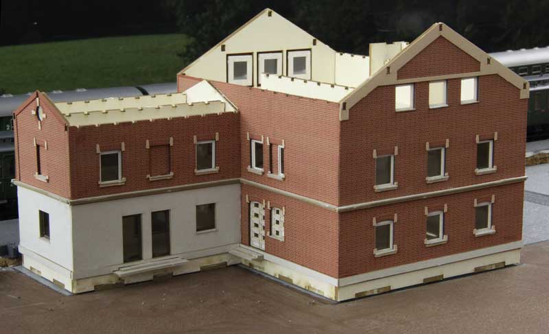 Stand am 03.01.2018: Über den Jahreswechsel hat Detlef das Hauptgebäude - bis auf das Dach - zusammengebaut, Fertigstellung demnächst. Der Vergleich mit dem Original zeigt die erhoffte große Ähnlichkeit: